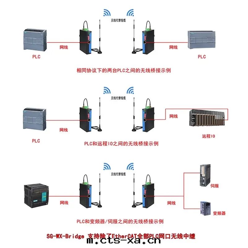 本产品是(shì)工業以(yǐ)太网(wǎng)(Profinet、EtherNet/IP、ModbusTCP等)轉(zhuǎn)無線(xiàn)設備,成(chéng)对(duì)使用(yòng)(一(yī)对(duì)一(yī)),出(chū)廠(chǎng)前(qián)已經(jīng)配对(duì)好(hǎo),用(yòng)户不(bù)需要再配对(duì),即插即用(yòng)。 适用(yòng)于(yú)用(yòng)户布(bù)線(xiàn)不(bù)方(fāng)便的场(chǎng)景。使用(yòng)方(fāng)式簡單,只(zhī)需要把(bǎ)撥碼开關(guān)設置好(hǎo)並(bìng)上(shàng)電(diàn)即可(kě)工作(zuò),無需進(jìn)行其(qí)它(tā)設置。 支持(chí)Profinet、EtherNet/IP、ModbusTCP、西(xī)門(mén)子S7以(yǐ)及(jí)所(suǒ)有(yǒu)上(shàng)层(céng)是(shì)TCPIP協議的通(tòng)訊協議。