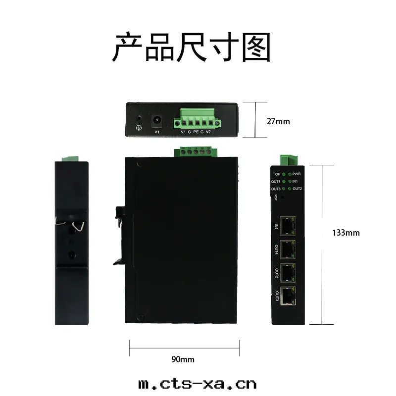 本产品4个(gè)EtherCAT 网(wǎng)口(kǒu),一(yī)進(jìn)三(sān)出(chū),RJ45; 數據(jù)幀處(chù)理(lǐ)順序IN→OUT4→OUT2→OUT3; 支持(chí)多(duō)種(zhǒng)拓扑結構,包(bāo)括線(xiàn)型、星(xīng)型、樹(shù)型等; 支持(chí)64位(wèi)分(fēn)布(bù)时钟,支持(chí)DC同(tóng)步,DC24V供電(diàn)。