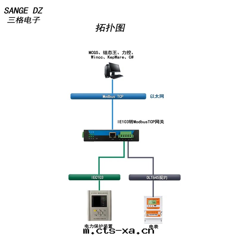 IEC103轉(zhuǎn)ModbusTCP网(wǎng)關(guān)型号(hào)SG-TCP-IEC103,是(shì)三(sān)格電(diàn)子推出(chū)的工業級网(wǎng)關(guān)(以(yǐ)下(xià)簡稱网(wǎng)關(guān)),主(zhǔ)要用(yòng)于(yú)IEC103數據(jù)采集、DLT645-1997/2007數據(jù)采集,IEC103支持(chí)遙測和(hé)遙信(xìn),可(kě)接微機(jī)綜合保護單元(yuán)、電(diàn)力系(xì)统微機(jī)保護單元(yuán)、電(diàn)表等,将采集到的數據(jù)轉(zhuǎn)换为(wèi)ModbusTCP協議數據(jù),对(duì)接ModbusTCP主(zhǔ)站、組态屏、MES系(xì)统等。