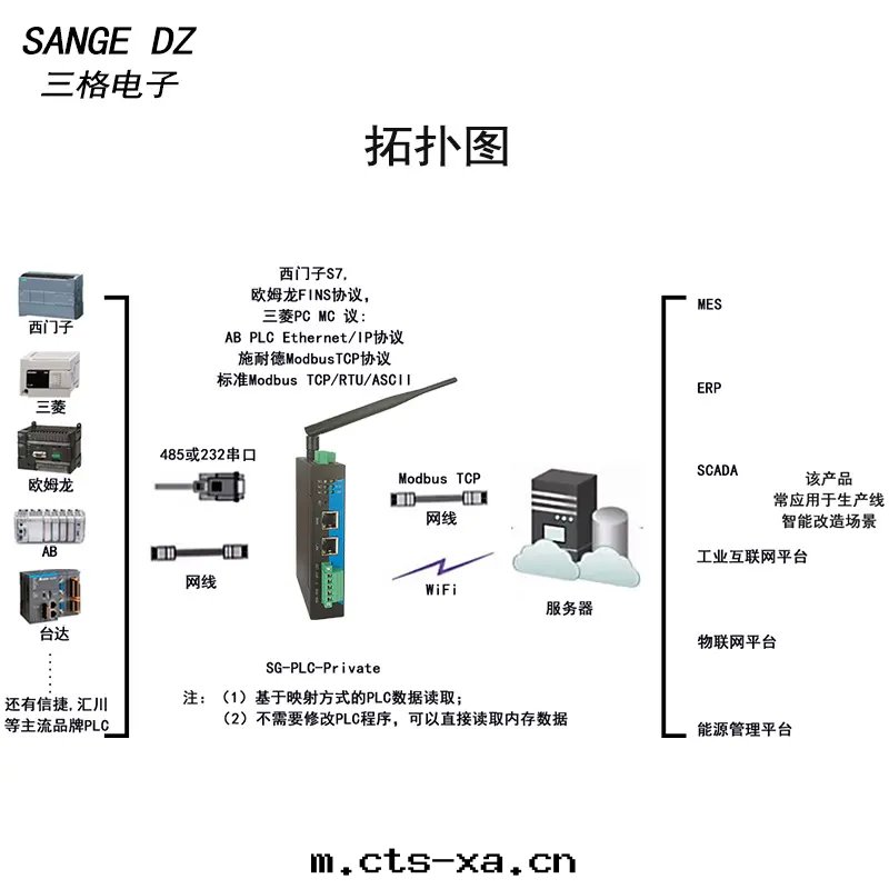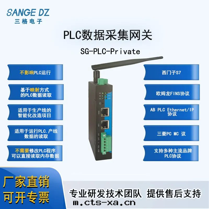 PLC轉(zhuǎn)Modbus网(wǎng)關(guān)型号(hào)SG-PLC-Private(PLC私有(yǒu)協議网(wǎng)關(guān)),是(shì)三(sān)格電(diàn)子推出(chū)的工業級网(wǎng)關(guān)。主(zhǔ)要用(yòng)于(yú)在(zài)不(bù)需要对(duì)PLC編程的情(qíng)況下(xià)将PLC數據(jù)映射到Modbus TCP(映射的方(fāng)式符合PLC工程师(shī)使用(yòng)習惯),配置簡潔使用(yòng)方(fāng)便。支持(chí)西(xī)門(mén)子、三(sān)菱、欧姆龍、羅克(kè)韋爾、台(tái)达(dá)、信(xìn)捷、彙川(chuān)、施耐德等廠(chǎng)商的PLC映射到Modbus TCP。支持(chí)S7、PPI、MC-1E、MC-3E、三(sān)菱FX系(xì)列編程口(kǒu)、Fins、EtherNet/IP、Modbus TCP/RTU/ASCII等協議。