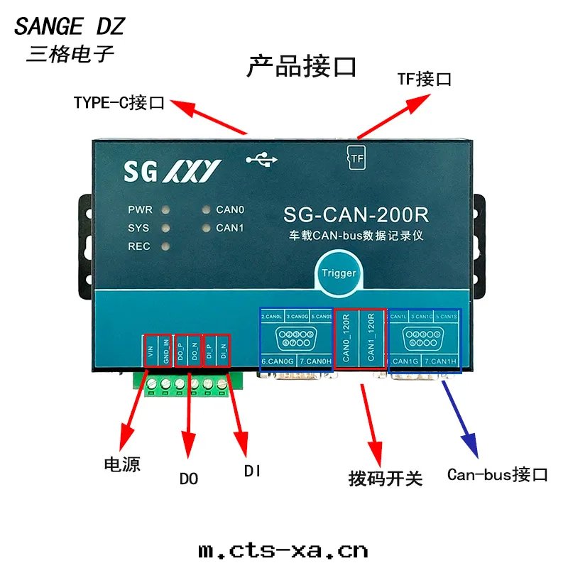 SG-CAN-200R是(shì)一(yī)款便攜式2通(tòng)道CAN總(zǒng)線(xiàn)數據(jù)記(jì)录(lù)儀,主(zhǔ)要用(yòng)于(yú)車輛、工業設備等CAN通(tòng)訊故障的离線(xiàn)分(fēn)析。該設備內(nèi)置32G存儲卡,支持(chí)5Kbps~1Mbps波(bō)特(tè)率,可(kě)长(cháng)时間(jiān)記(jì)录(lù)CAN報文(wén)數據(jù),具有(yǒu)數據(jù)过(guò)濾和(hé)觸发記(jì)录(lù)功能(néng)。硬(yìng)件(jiàn)配置包(bāo)含數字(zì)量(liàng)輸入(rù)/輸出(chū)接口(kǒu)、两(liǎng)路(lù)CAN-Bus接口(kǒu)及(jí)TYPE-C配置接口(kǒu),工作(zuò)電(diàn)壓7.5V~48V,适應(yìng)-40℃~85℃环(huán)境。通(tòng)过(guò)SD卡存儲數據(jù),支持(chí)轉(zhuǎn)换为(wèi)各(gè)类分(fēn)析软(ruǎn)件(jiàn)格式,适用(yòng)于(yú)汽車、高(gāo)铁(tiě)、風(fēng)電(diàn)等行業CAN通(tòng)訊故障的检測與(yǔ)排查。