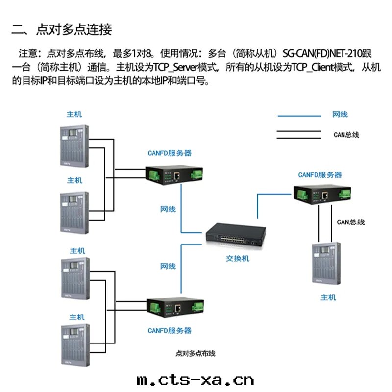 SG-CAN(FD)NET-210 是(shì)一(yī)款用(yòng)来(lái)把(bǎ) CANFD總(zǒng)線(xiàn)數據(jù)轉(zhuǎn)为(wèi)网(wǎng)口(kǒu)數據(jù)的設備。 网(wǎng)口(kǒu)支持(chí) TCP Sever、TCP Client、UDP Sever、UDP Client 四(sì)種(zhǒng)模式;网(wǎng)口(kǒu)支持(chí) 10/100Mbps 自(zì)适應(yìng)以(yǐ)太网(wǎng)接口(kǒu),支持(chí) AUTO-MDIX 网(wǎng)線(xiàn)交叉(chā)直(zhí)連(lián)自(zì)動(dòng)切(qiè) 换。可(kě)以(yǐ)通(tòng)过(guò)软(ruǎn)件(jiàn)配置和(hé) Web 网(wǎng)页(yè)配置。