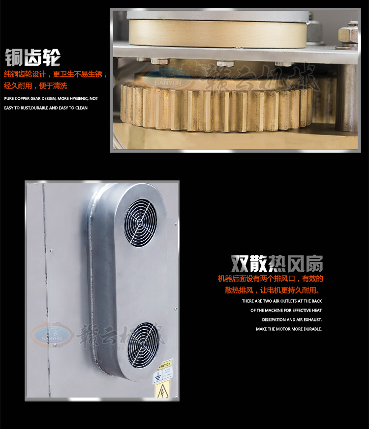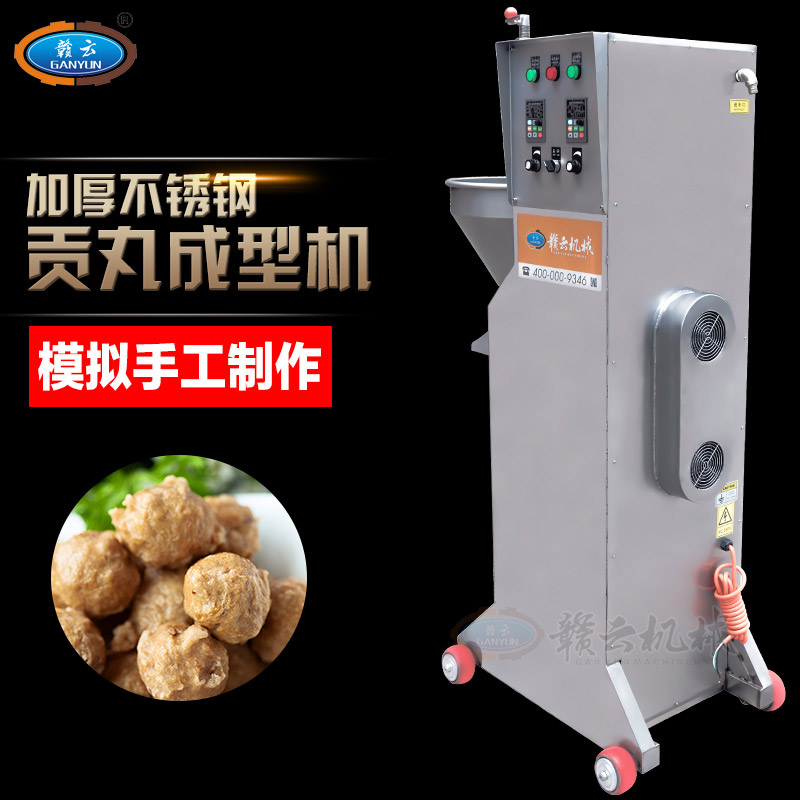 贛云牌貢丸成型機(jī)采用雙速系統(tǒng),推料和挖出成型各用一個(gè)電機(jī),挖出成型采用半球形舀勺仿人工制作,設(shè)計(jì)科學(xué)合理,采用全不銹鋼材質(zhì),符合食品衛(wèi)生加工要求貢丸大小由模具控制,每分鐘可加工成型200粒貢丸,機(jī)器的操作和清洗都很方便。隨機(jī)配成型模具:27mm、21mm和32mm�?啥ㄖ�18mm,34mm模具哦。