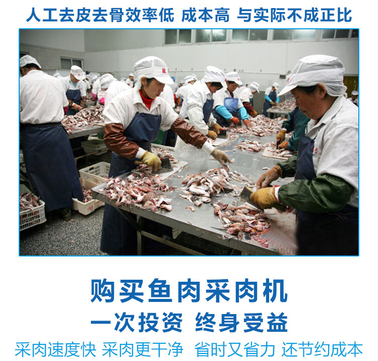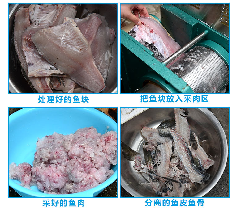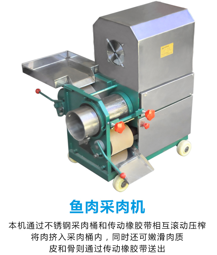 該機(jī)器除了可采淡水魚肉,還可采海魚肉、蝦、蟹、泥鰍等,比手工采肉效率更高,成本更低、干凈衛(wèi)生,是魚糜制品前期處理的設(shè)備之一。配套的還有魚糜精濾機(jī),我廠生產(chǎn)的普通款魚肉采肉機(jī)有160型和200型兩種型號,全不銹鋼材質(zhì)的有200型、300型和350型;魚糜精濾機(jī)有100型、200型和300型三種型號。