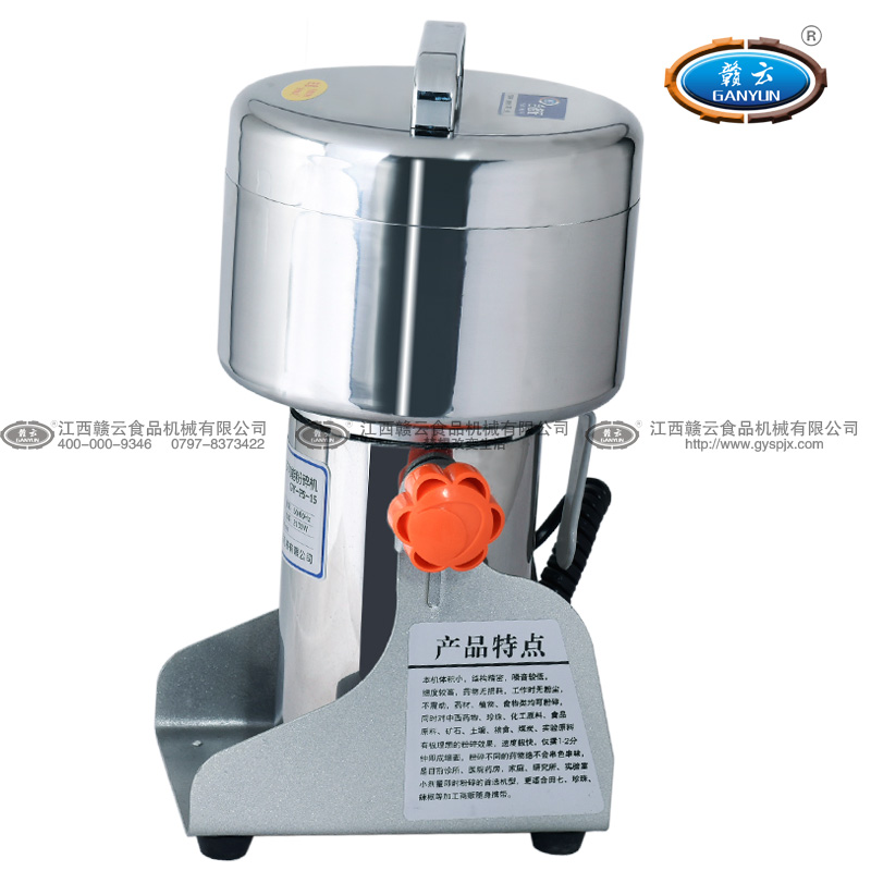 贛云FS系列多功能家用商用粉碎機(jī),主要用于五谷粉碎五谷、雜糧、田七、 阿膠、白叁等材料的粉碎,采用超高速優(yōu)質(zhì)純銅電機(jī),核心動力強(qiáng)勁,功率十足,有效保 證了產(chǎn)品質(zhì)量的穩(wěn)定性,食品級不銹鋼粉碎倉內(nèi)由原來的雙刀片升級為三刀片,意味著每 分鐘同比增加了5萬次的粉碎效率,達(dá)到粉碎無死角,粉碎更細(xì)膩,大大縮短了物料的粉碎 時間,同比時間粉碎效果更細(xì)膩,原過載保護(hù)保險(xiǎn)絲升級為空氣過載保護(hù)器,過載只需輕 輕一按,方便快捷,更有效的保護(hù)了電機(jī)。