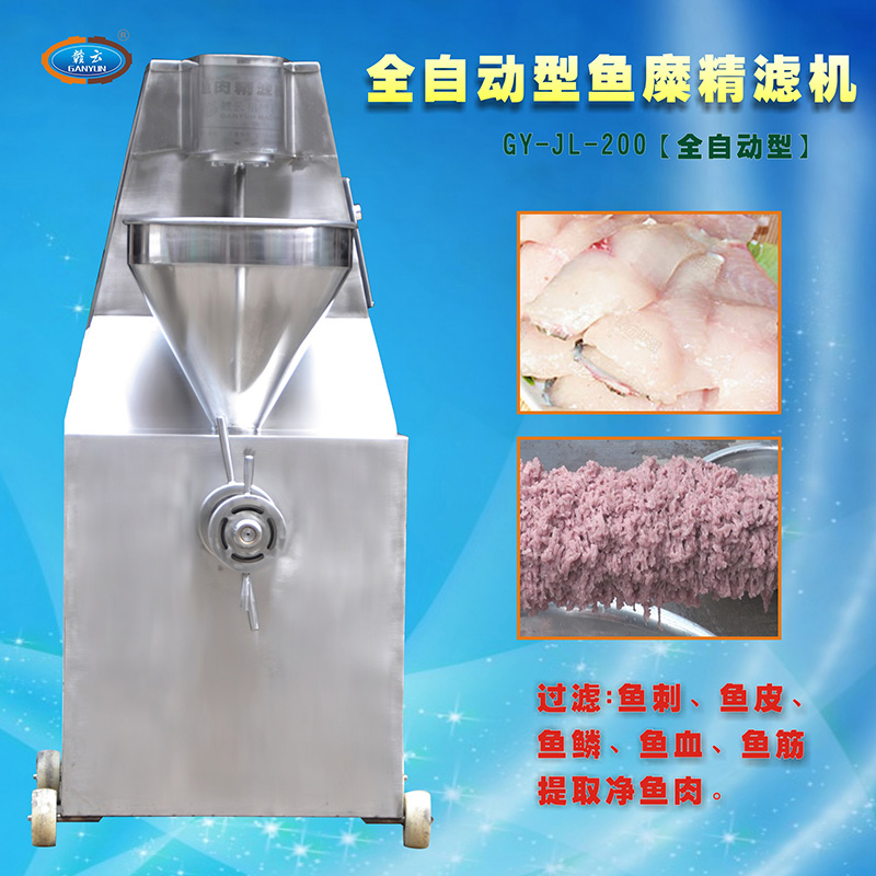魚肉精濾機主要用于魚糜加工生產(chǎn), 是贛云牌魚肉采肉機采取魚肉之后的第二步精濾處理設(shè)備,用魚肉精濾機精濾的魚肉色澤白。主要將魚漿中的魚細骨、魚鱗、魚筋、魚皮等雜物剔除出來。