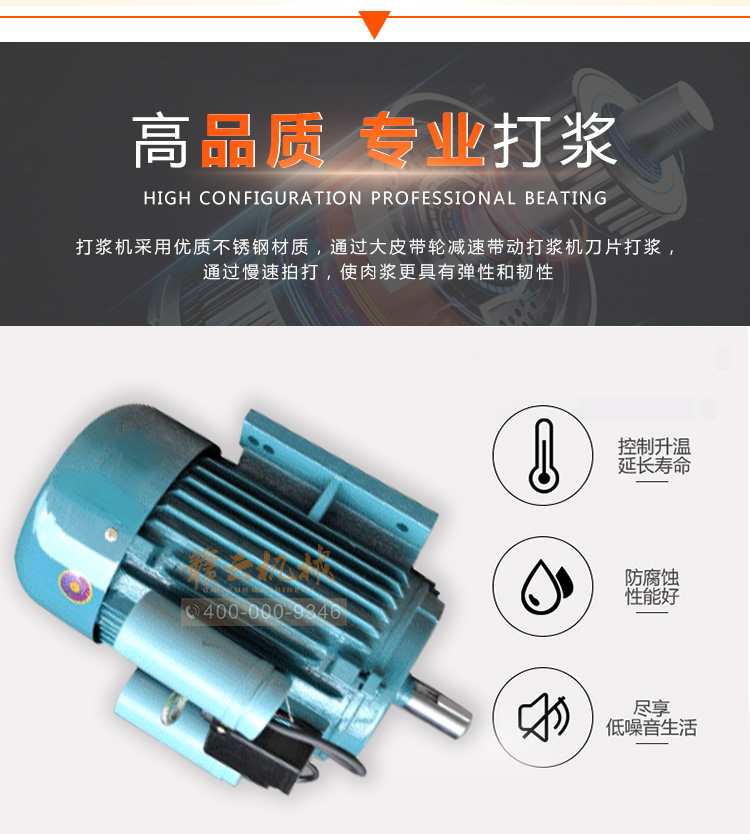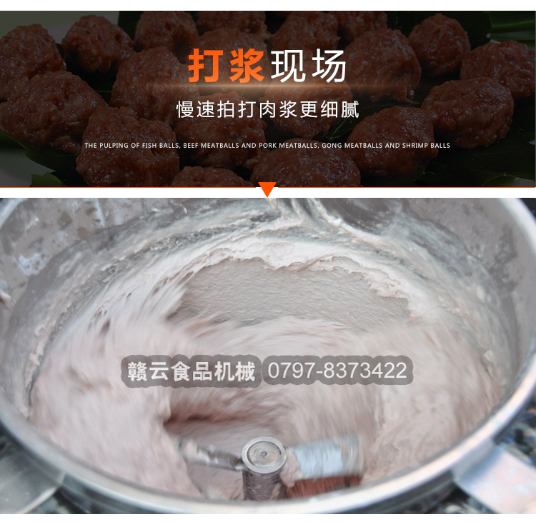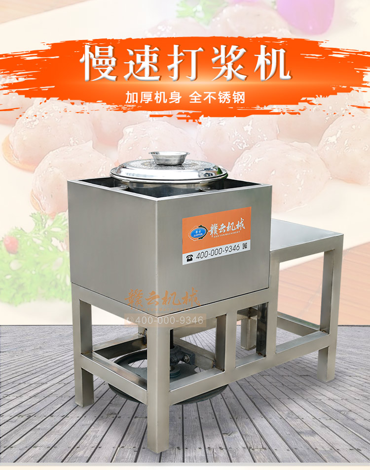 贛云牌全不銹鋼慢速魚丸、肉丸打漿機(jī)采用優(yōu)質(zhì)不銹鋼材質(zhì),通過大皮帶輪減速帶動打漿機(jī)刀片打漿,通過慢速拍打,使肉漿更具有彈性和韌性。適合魚丸、牛肉丸和貢丸的制漿之用。