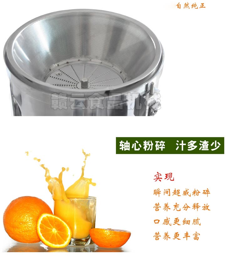 贛云為您提供3000型不銹鋼果蔬榨汁機(jī),該機(jī)可榨各類水果,少量蔬菜,如黃瓜、西紅柿、胡蘿卜、生姜等,出汁率比普通的榨汁機(jī)要高。新采用軸心粉碎技術(shù),汁多渣少,離心分離渣汁,給你一口原汁原味的感覺。