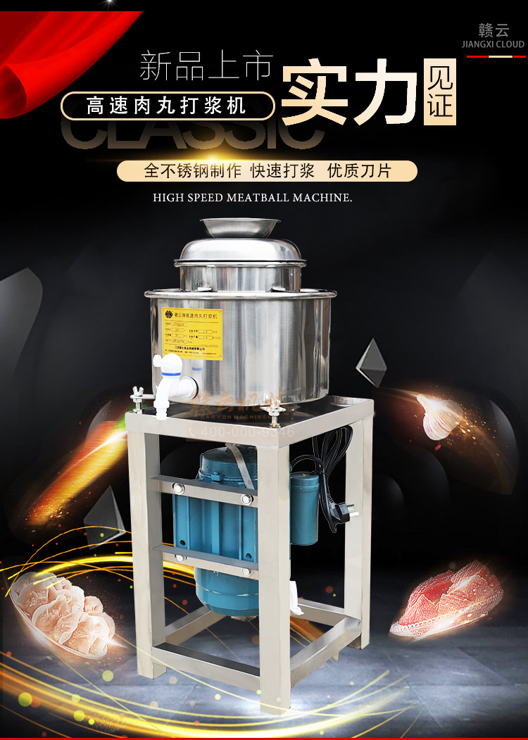高速肉丸打漿機(jī),做豬肉丸選贛云牌直立式高速肉丸打漿機(jī)系列,家用商用選打肉泥機(jī),贛云全不銹鋼雙桶打漿機(jī),采用新無縫焊接技術(shù),弧形打漿桶,打漿效果更好,充分發(fā)揮機(jī)器的破碎,攪拌,高速的作用!配上贛云3.0kw大功率純銅國標(biāo)電機(jī),質(zhì)量好的不得了。