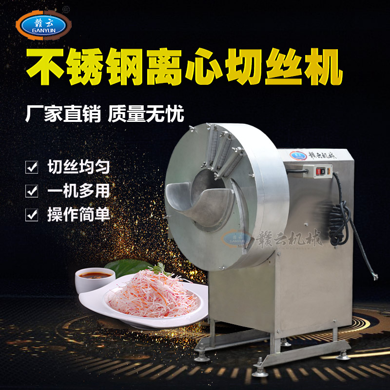 離心切絲機(jī)采用201不銹鋼板材并結(jié)合歐美現(xiàn)代小型切絲機(jī)種設(shè)計(jì)而成,可根據(jù)物料定向切割,所切絲狀和片狀基本與物料本身切面長度一致,該機(jī)可定做切割尺寸范圍1-6mm,出廠默認(rèn)尺寸為2mm規(guī)格切絲標(biāo)準(zhǔn),贛云牌定向離心切絲機(jī)500型,離心桶外直接約500mm,時(shí)產(chǎn)可達(dá)800kg每小時(shí),是中央廚房凈菜加工設(shè)備之球根類離心切絲切片設(shè)備之一,也是生姜,鮮筍切絲切片設(shè)備。
