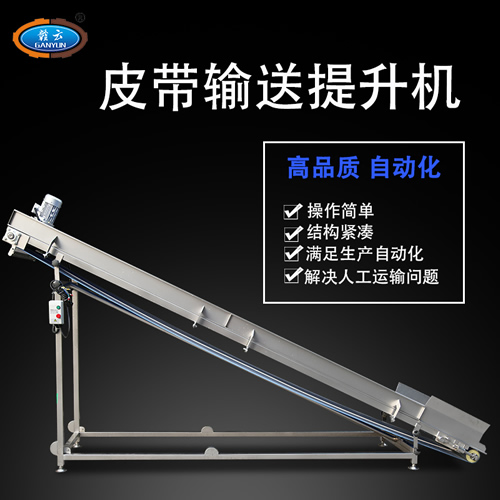 提升機(jī),提升輸送設(shè)備,提高企業(yè)加工生產(chǎn)線自動(dòng)化程度,解決人工運(yùn)輸難題,可根據(jù)客戶定制各種輸送設(shè)備,中高端提升機(jī),全304不銹鋼材質(zhì)設(shè)計(jì),采用高級(jí)噴砂技術(shù)處理,品質(zhì)保證,可升降提升,適用范圍更廣,贛云60型皮帶提升機(jī)可配合多種食品加工機(jī)械聯(lián)合適用。