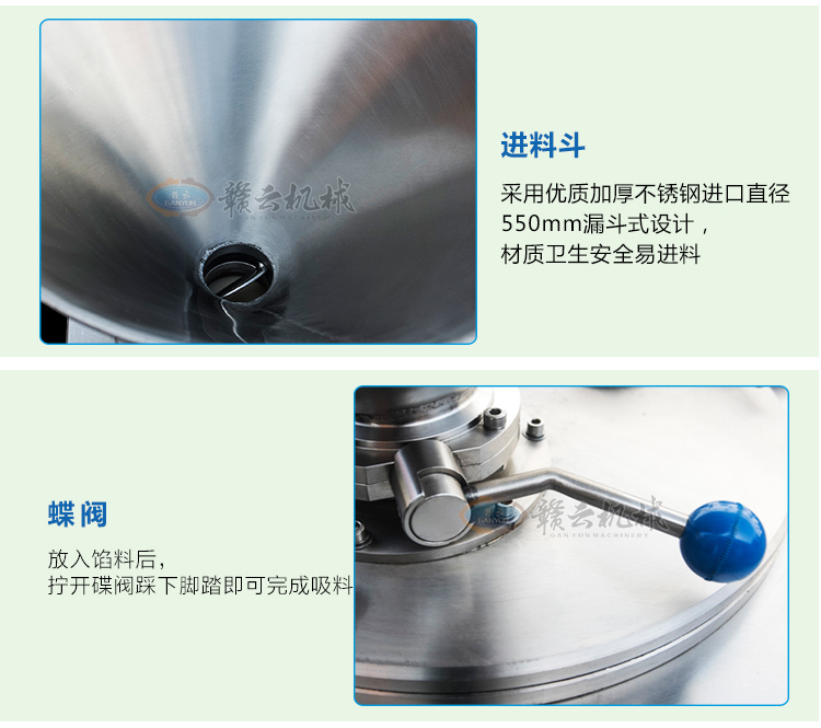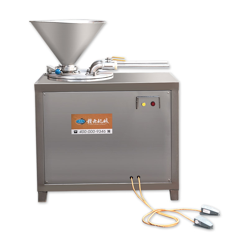 贛云液壓灌腸機(jī),新款灌漿機(jī),雙管灌腸機(jī)采用液壓灌漿推料原理設(shè)計(jì),密封性能良好,配合雙管灌漿,可自動(dòng)調(diào)節(jié)灌漿,自動(dòng)吸料,腳踏開關(guān)控制操縱自如。是腸類灌腸設(shè)備。
