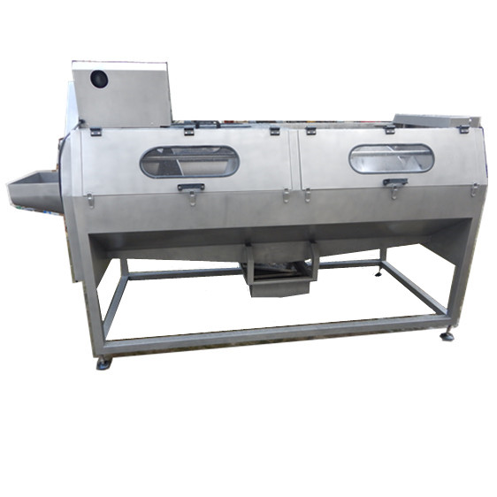 新型全自動毛刷清洗去皮機,主要使用于根莖類物料的清洗和去皮,如土豆、馬鈴薯、芋頭、胡蘿卜等產(chǎn)品,可連接根莖類蔬果加工生產(chǎn)線,新型全自動毛刷清洗去皮機改變了以往連續(xù)式清洗去皮機上面入料落差大,容易使物料破損和機器清洗不方便等問題,本機側面入料,沒有落差,機器自帶噴淋和清洗系統(tǒng),每次使用完畢后打開進水閥門設備將自行清洗,省時省力,該機外形時尚透明可直接看清整個清洗過程,是根莖類蔬果清洗去皮的加工產(chǎn)品。