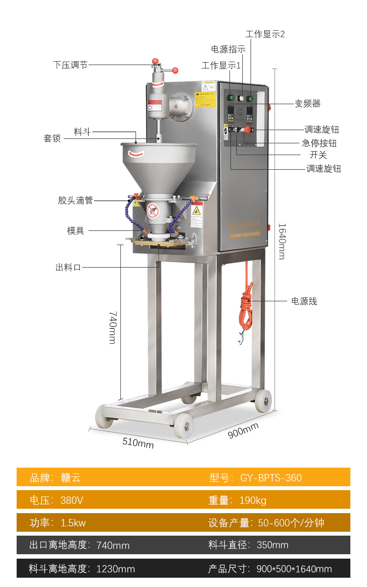 肉丸成型機(jī)械->實(shí)心肉丸機(jī)->新款變頻雙調(diào)速肉丸成型機(jī) | |||||||