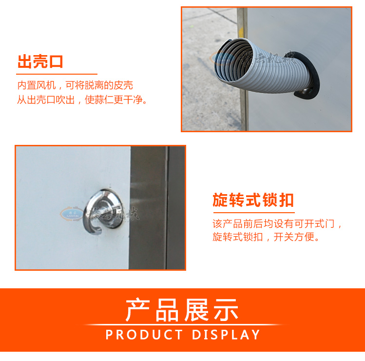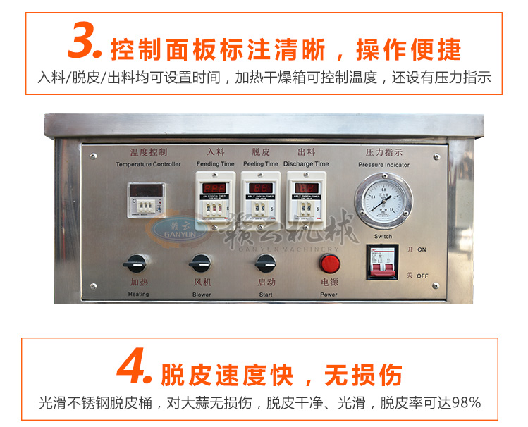 通過電、氣原理控制入料、脫皮、出料程序,實(shí)現(xiàn)完全自動(dòng)化,連續(xù)工作,大大降低人力勞動(dòng)強(qiáng)度