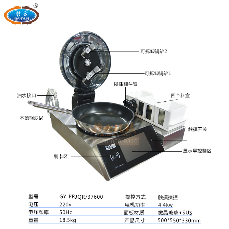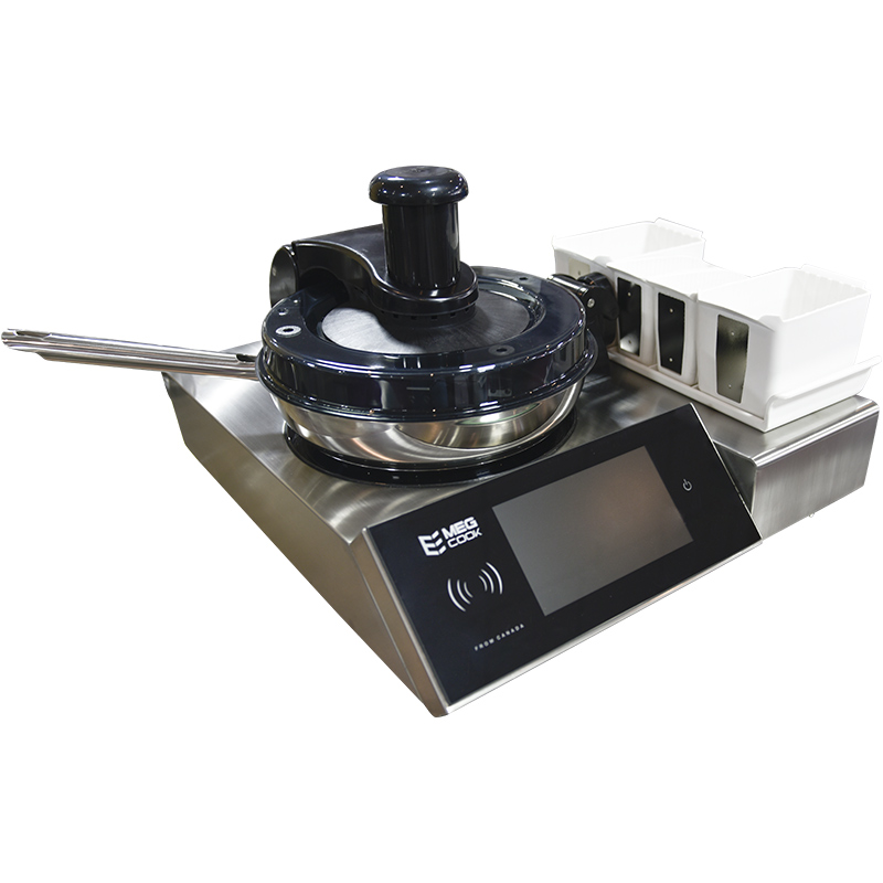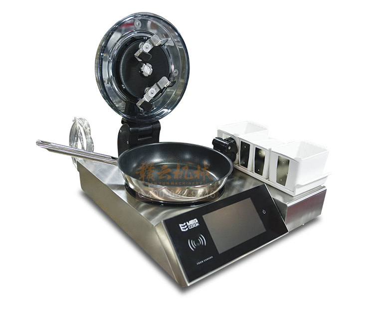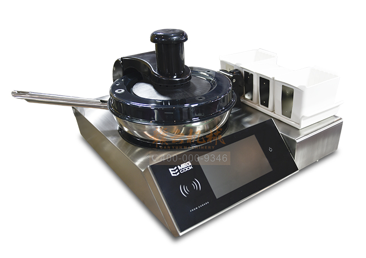 全自動(dòng)智能烹飪機(jī)器人,無需人員輔助,自動(dòng)加油、加水、加料;機(jī)器自己炒菜,