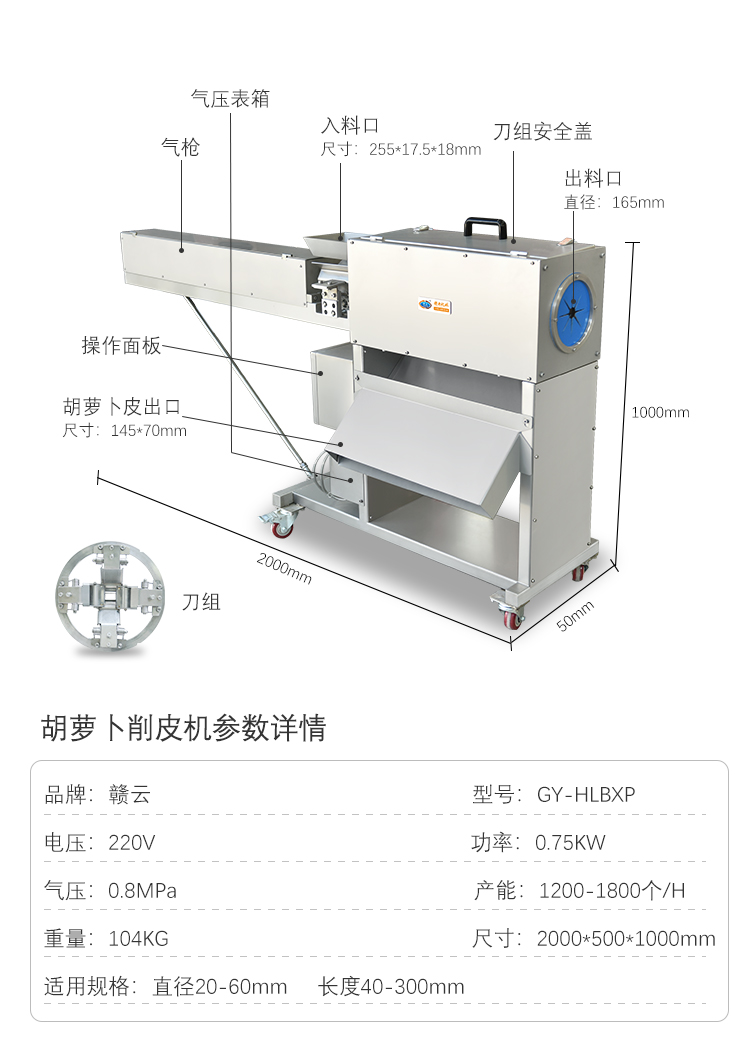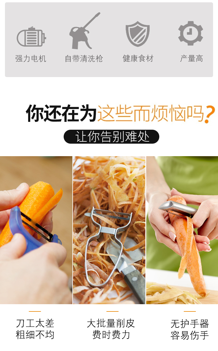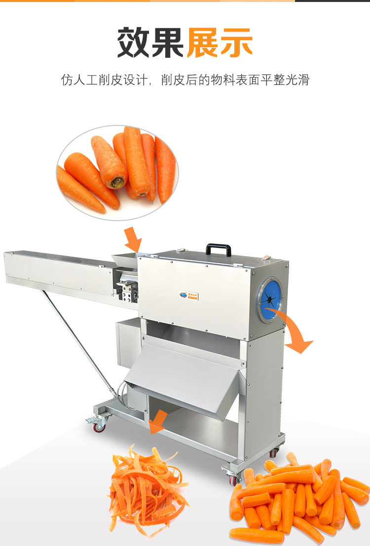 1.胡蘿卜削皮去皮機(jī)人工放料自動(dòng)出料,削皮速度快、效果好
