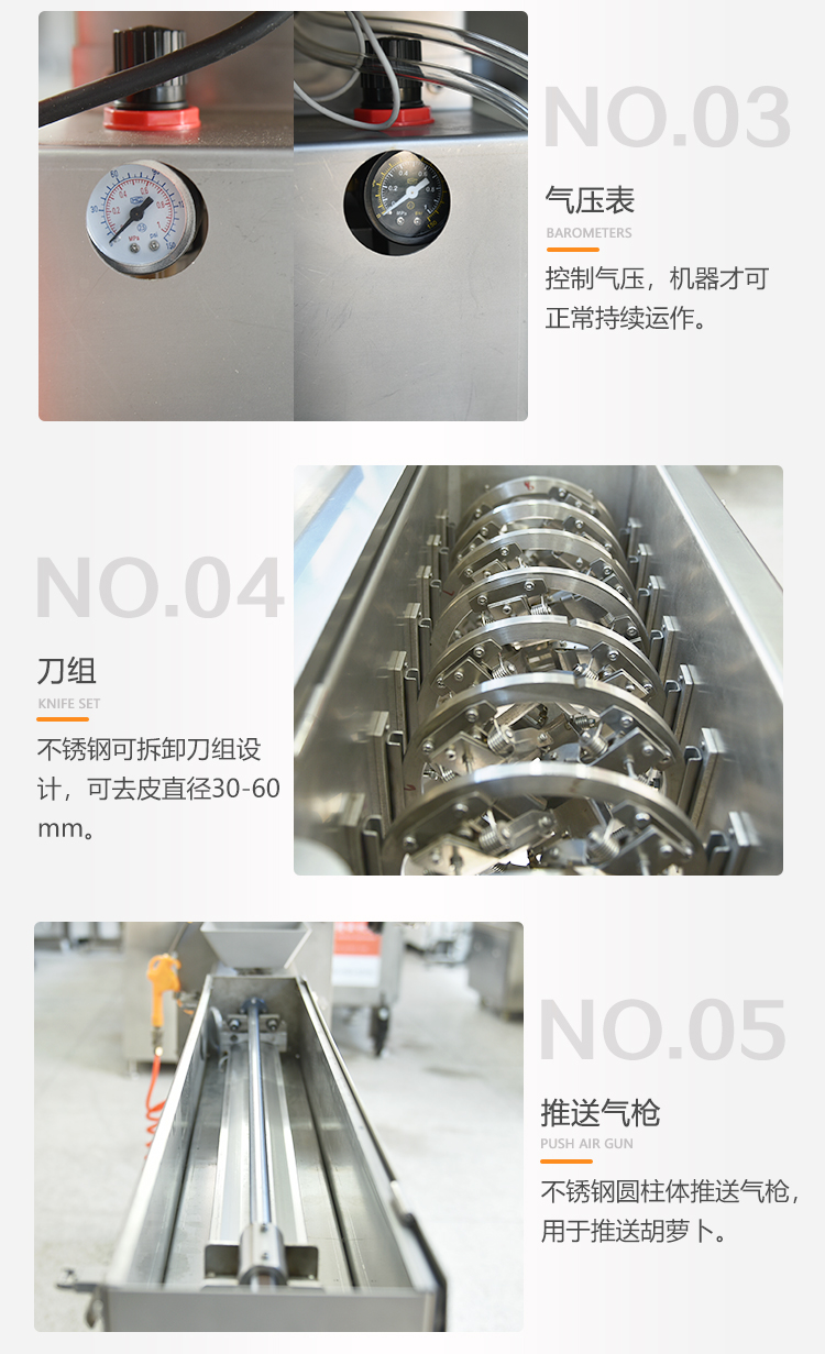 2.仿人工削皮設(shè)計(jì),削皮后的物料表面平整光滑