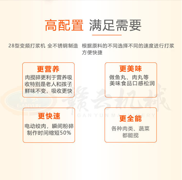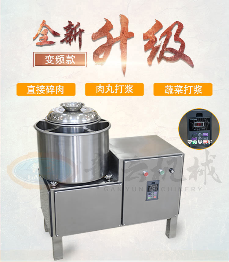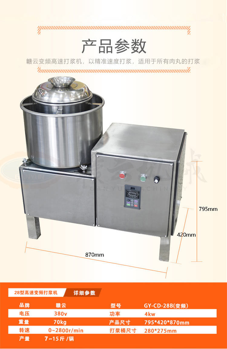28型變頻傳動打漿機,全封閉不銹鋼設(shè)計更好的保護電機,可打7-15斤每鍋,適合肉丸魚丸加工作坊加工生產(chǎn)。