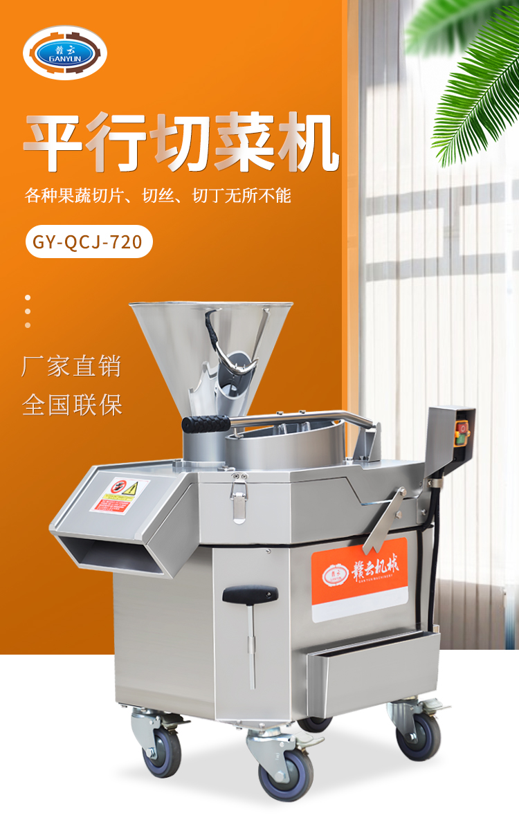 多功能切菜機(jī)廠家設(shè)備視頻展示,專(zhuān)業(yè)生產(chǎn)平行切菜機(jī),針對(duì)果蔬切片、切絲、切丁,設(shè)備產(chǎn)量高,速度快,一臺(tái)切菜機(jī)可代替多名人工切菜,省時(shí)省人工,切菜機(jī)的操作方法簡(jiǎn)單。歡迎前來(lái)咨詢(xún)贛云機(jī)械