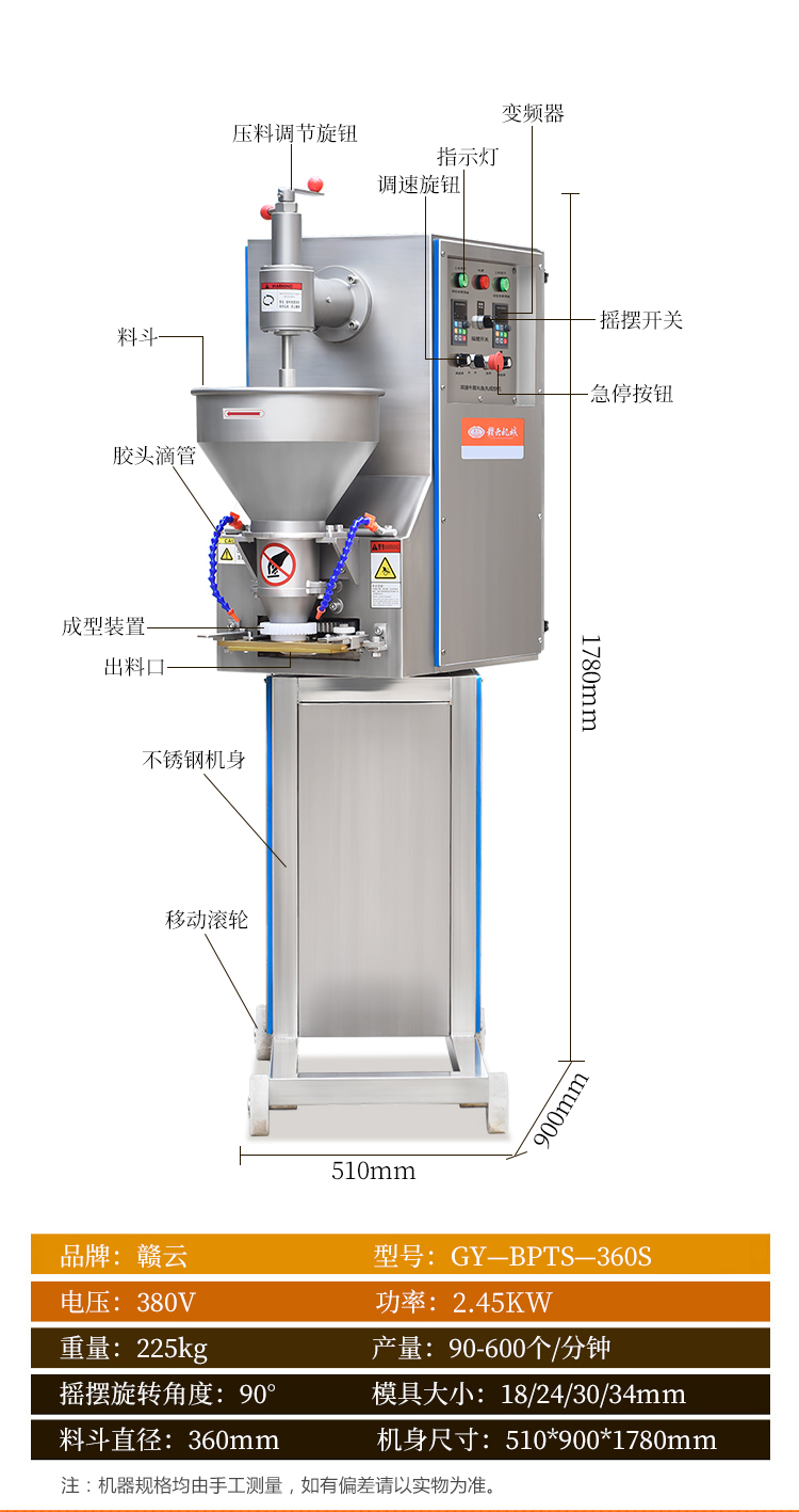 主頁-> 肉丸成型機(jī)械->實心肉丸機(jī)->雙速肉丸搖擺成型機(jī)