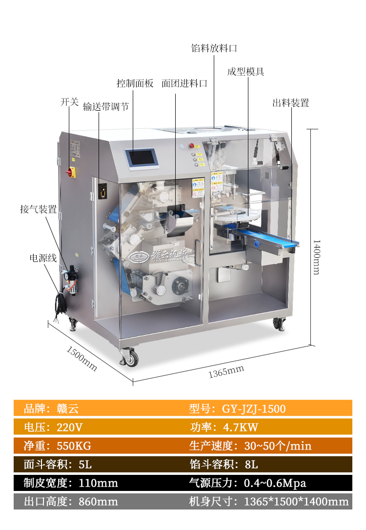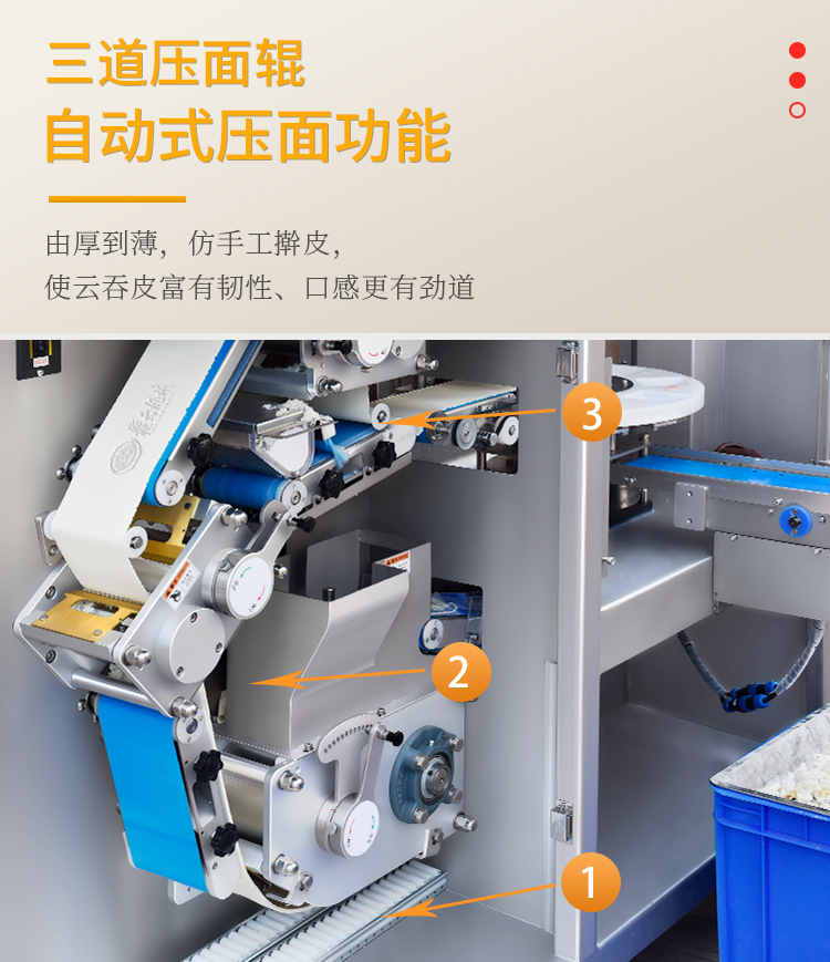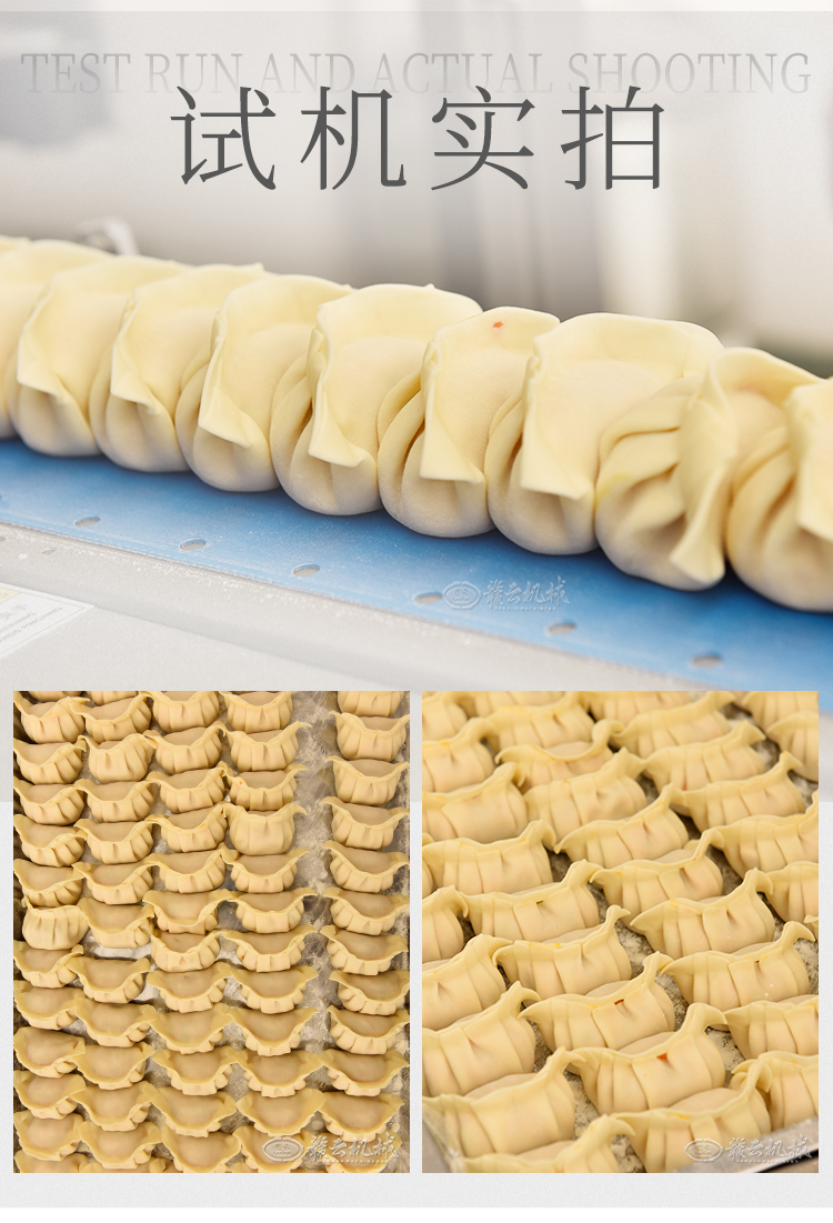 贛云機(jī)械生產(chǎn)銷售全自動(dòng)餃子機(jī),餃子機(jī)設(shè)備采用模擬人工壓餃子工藝,餃子包合美觀的成型特點(diǎn),餃子機(jī)擁有三道壓面輥?zhàn)詣?dòng)式壓面功能,由厚到薄,仿手工搟皮,做出的餃子皮富有韌性、口感勁道,花邊餃子機(jī)使用定量供料原理,生產(chǎn)時(shí)只需將面團(tuán)與餡料放入進(jìn)料口,開機(jī)即可自動(dòng)生產(chǎn)出餃子。
