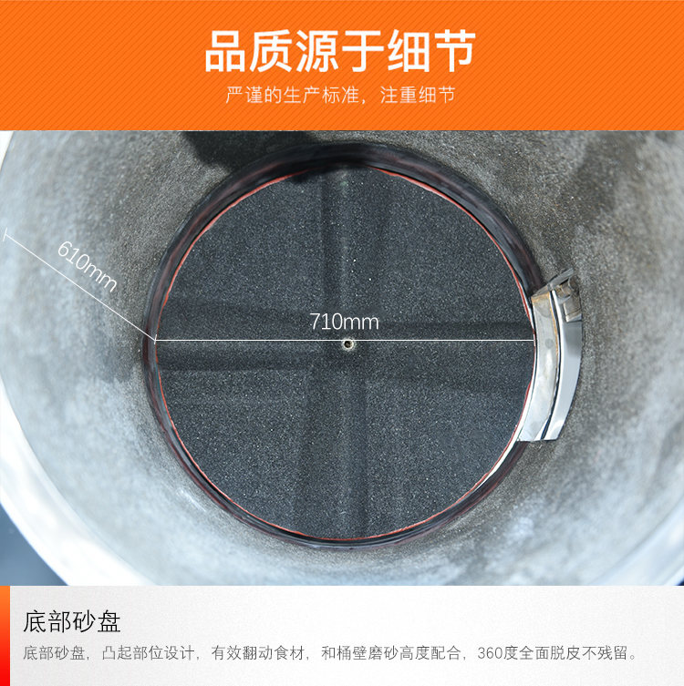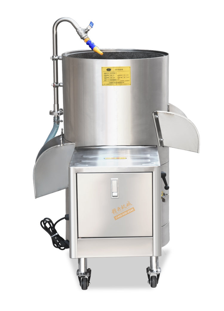 初次使用土豆脫皮機前,請先檢測機器的各個部件是否齊全和安裝穩(wěn)固,并且電源是否正確接通,可參閱土豆脫皮機使用說明書,在檢測無誤后,先將土豆放入脫皮機的料桶后,將電源開關(guān)打開,電源開啟后,料桶地盤通過高速旋轉(zhuǎn)將不斷翻動土豆并且讓土豆與周邊磨砂摩擦達(dá)到去皮效果,高速帶動土豆在料桶壁上不停的碰撞摩擦,使土豆去皮效率高。土豆脫皮機料桶底盤采用沙盤構(gòu)成,凸起部位設(shè)計,有效翻動食材,和桶壁磨砂高度配合,360度全面脫皮不殘留。在通過可調(diào)節(jié)膠頭滴管,根據(jù)操作需要隨心調(diào)節(jié)水流,想沖哪里沖哪里,省時省水去皮之后更干凈配上開關(guān)閥門,停放水更方便,可以保證出工后的土豆干凈、清潔。
