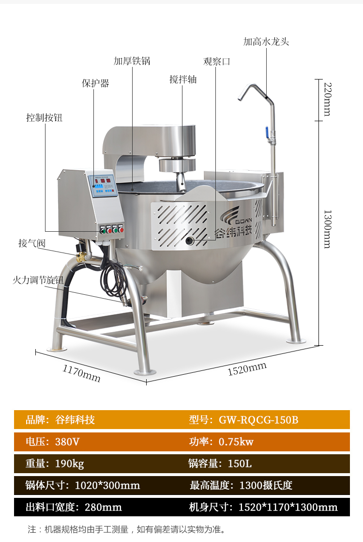 主頁-> 中央廚房設(shè)備->熱調(diào)理區(qū)設(shè)備->150升燃?xì)獬床藱C(jī)(帶攪拌)