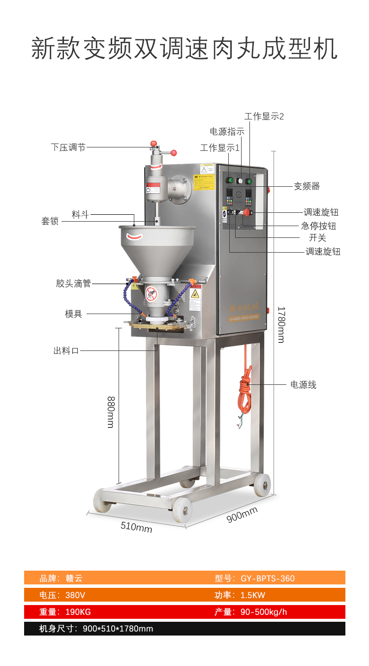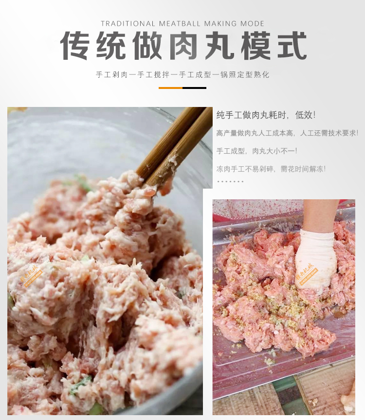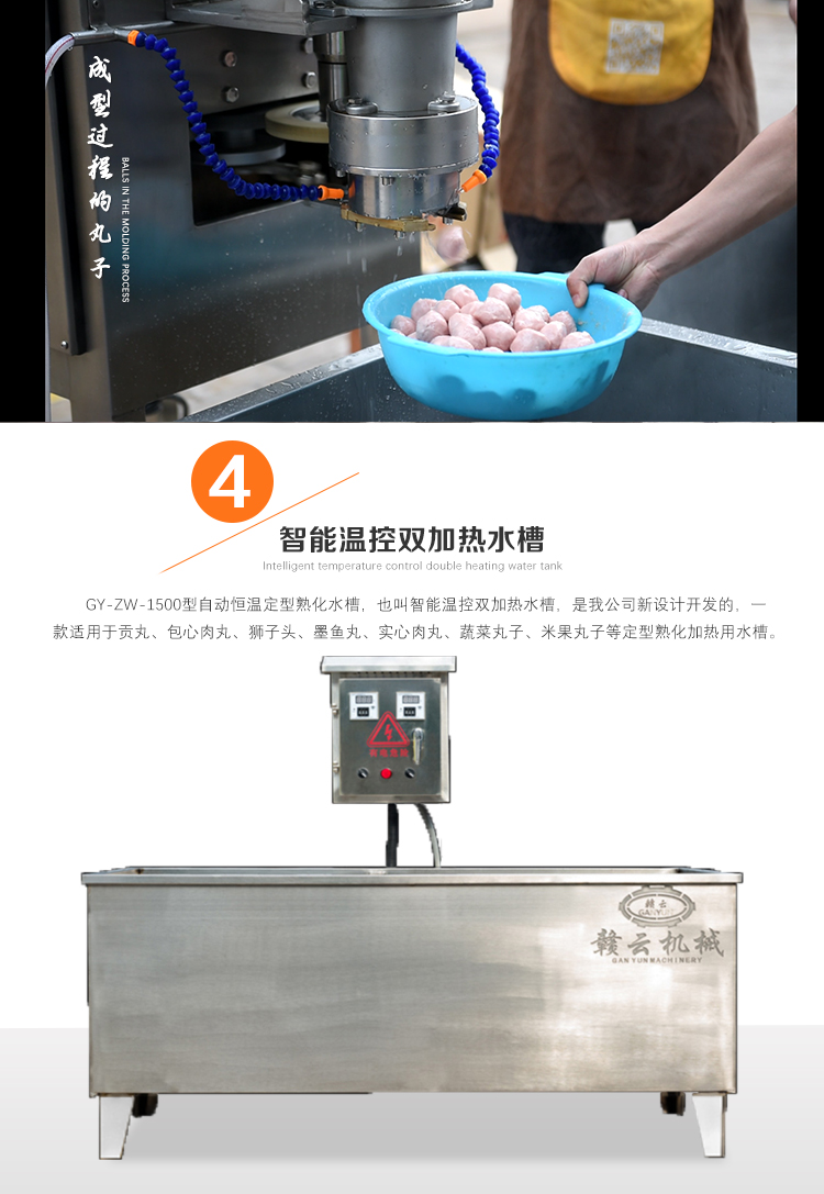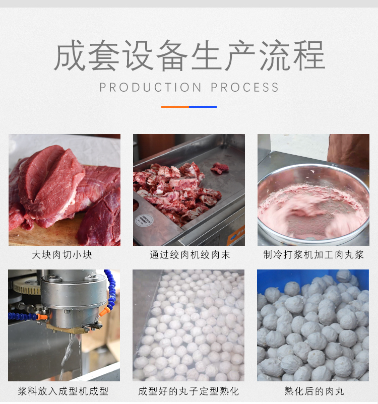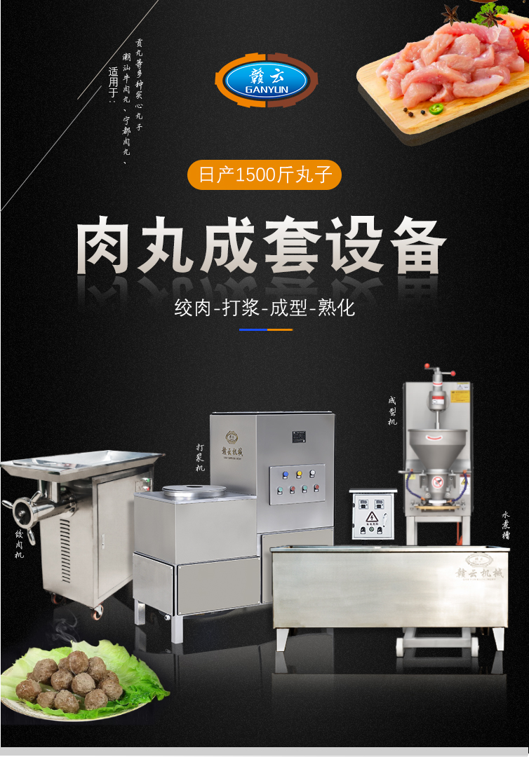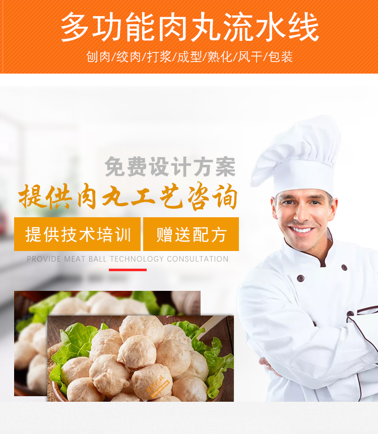 用于肉類的絞肉、打漿及肉丸的成型和熟化,可生產(chǎn)各類牛肉丸、素丸、魚丸、豬肉丸、火鍋丸子等各類實心丸子。