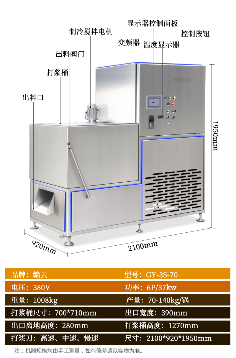主頁-> 肉丸打漿機(jī)械->調(diào)速打漿機(jī)->三速制冷打漿機(jī)(70桶)