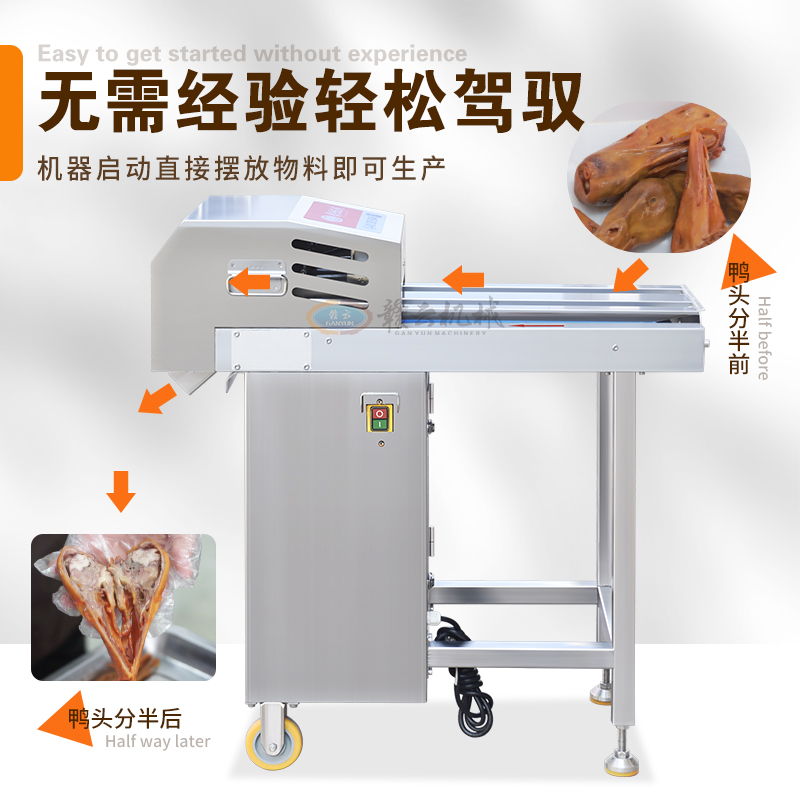 適用于常溫:雞爪、鴨頭、鵝頭、海參、胡蘿卜、豬喉等對(duì)稱(chēng)切半加工