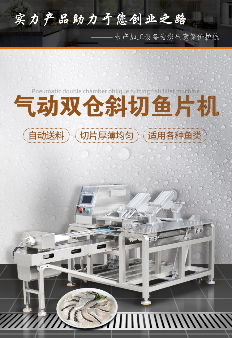 主頁-> 水產(chǎn)加工設(shè)備->魚肉加工設(shè)備->氣動(dòng)雙路斜切魚片機(jī)