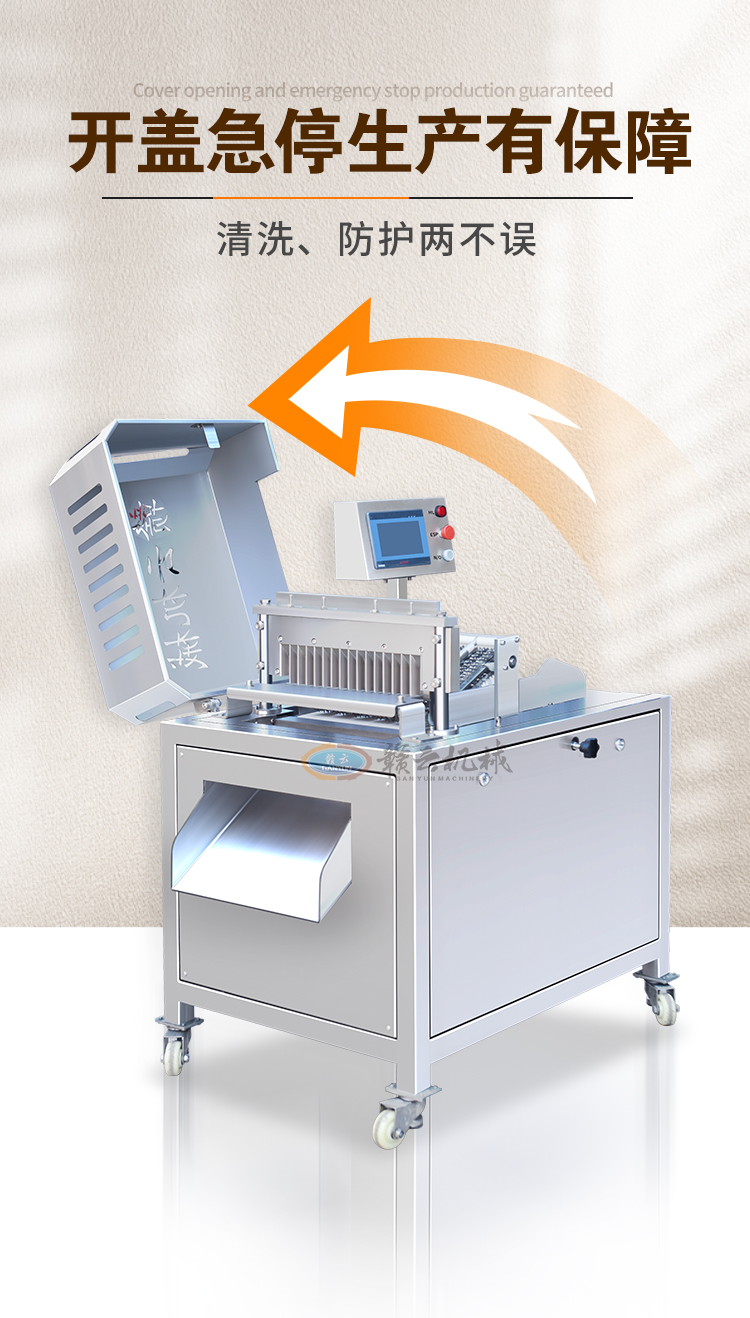 適用于帶骨家禽、凍肉、凍魚、排骨等肉制品的快速一次切塊。