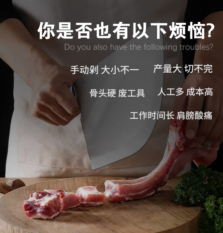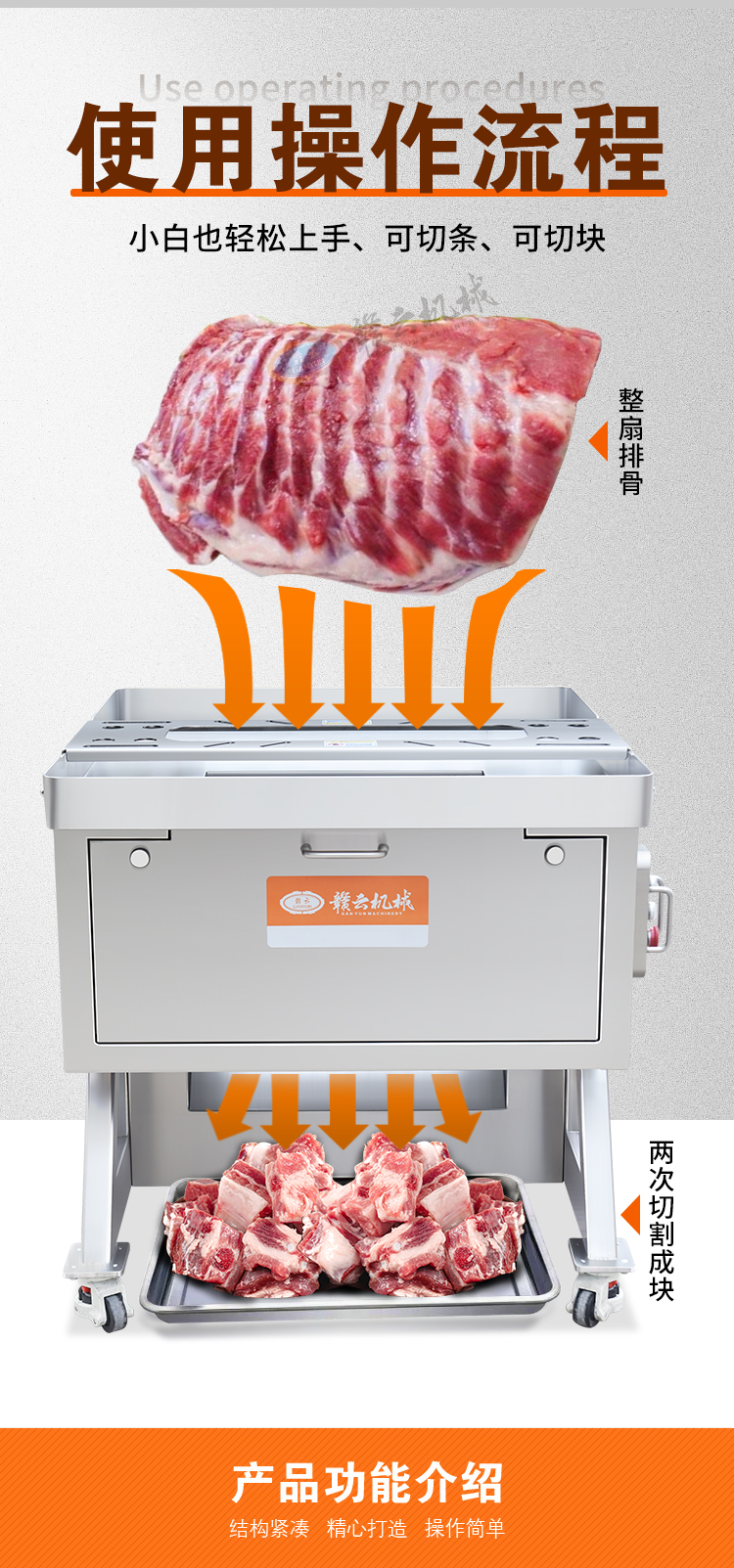 用于新鮮豬排骨、羊排、雞、鴨、魚、兔子、豬蹄的切條切塊加工。