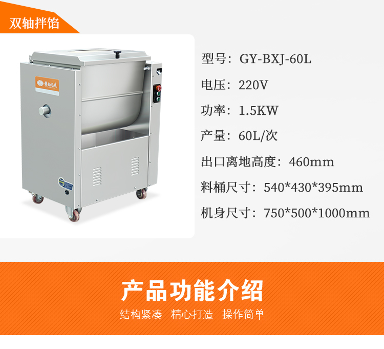 肉制品前處理->斬拌滾揉設(shè)備->60L拌餡機 | |||||||