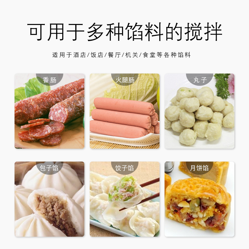 適用于肉泥、餃子餡、包子餡、混沌餡、月餅餡等餡料的快速攪拌。