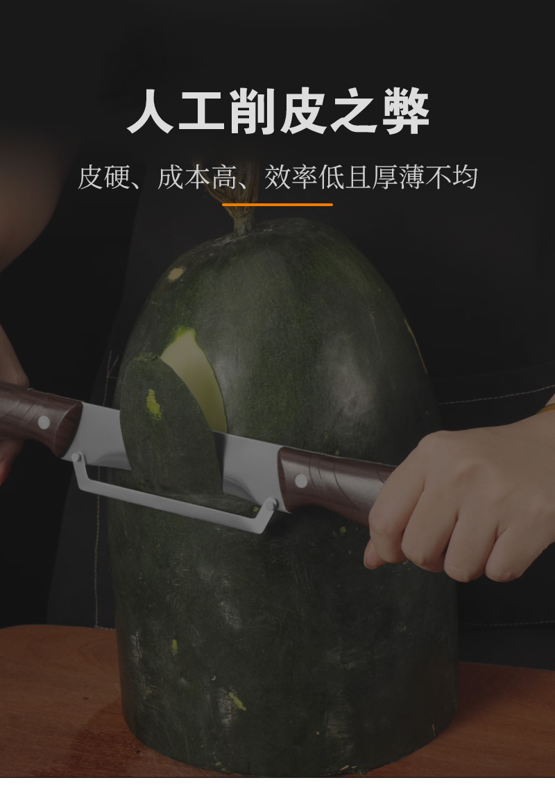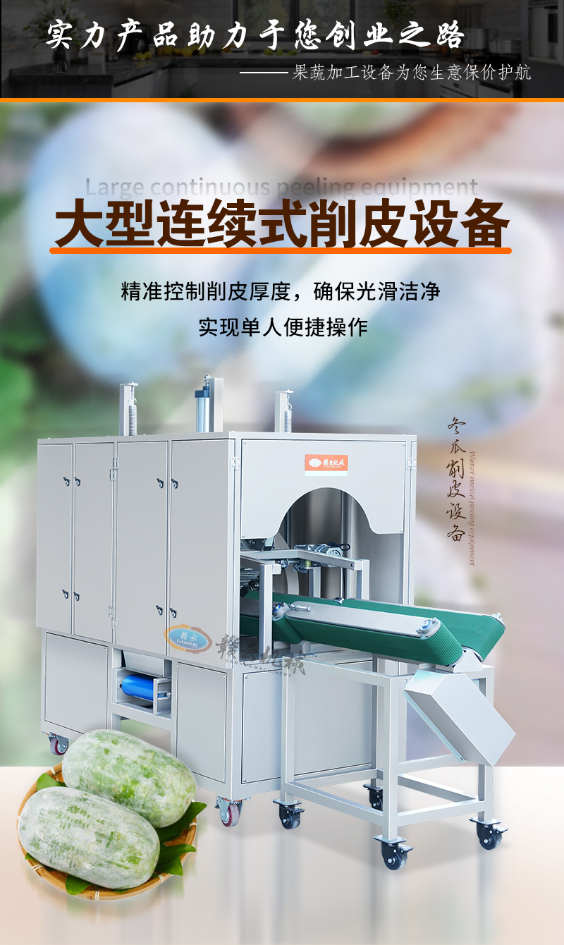 通過對大冬瓜進行旋轉(zhuǎn)高效快速的自動去皮,去皮干凈,適用于央廚、營養(yǎng)配餐、加工廠等大量冬瓜處理,可搭配連續(xù)式進料實現(xiàn)流水線作業(yè)。