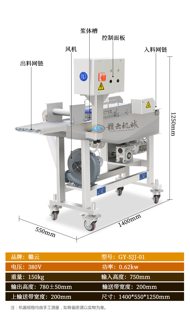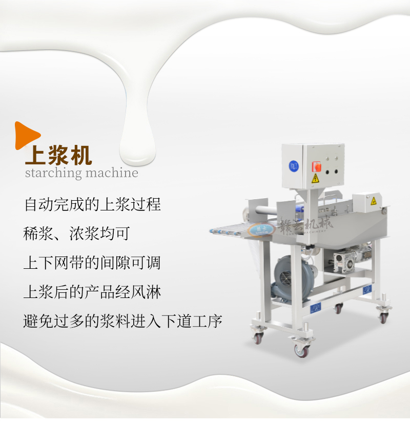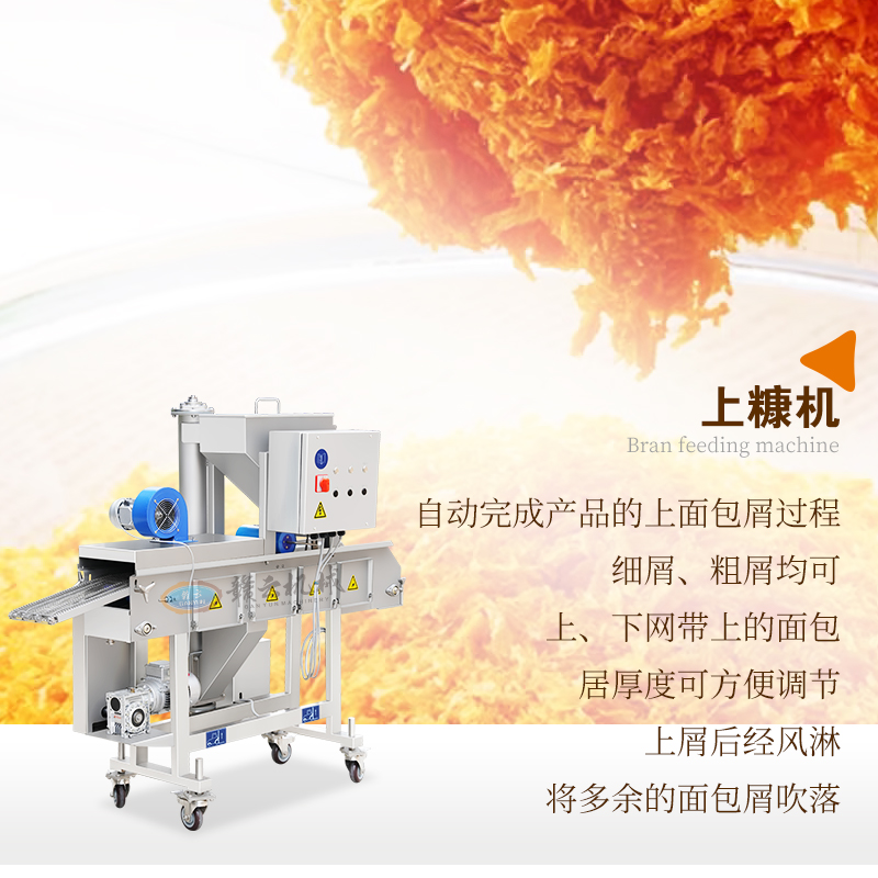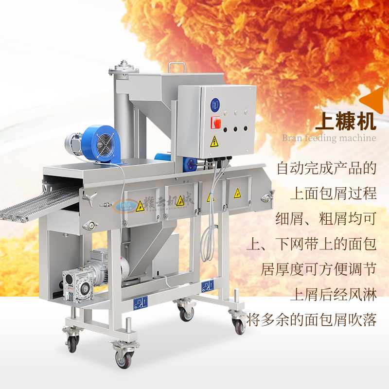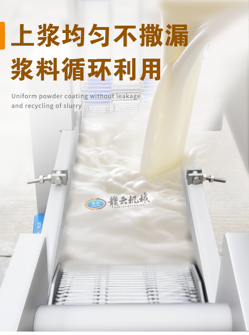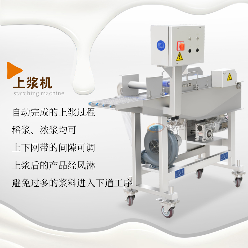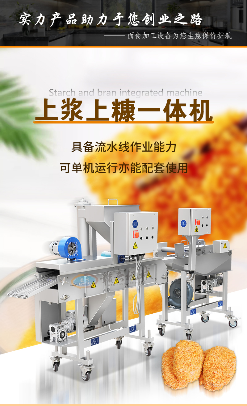 用于雞排、肉餅、魚排、牛排等各種油炸食品的快速自動上漿上糠。