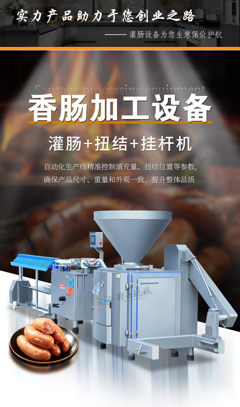 肉制品前處理->專(zhuān)用灌腸設(shè)備->灌腸扭結(jié)掛桿組合線(xiàn) | |||||||
