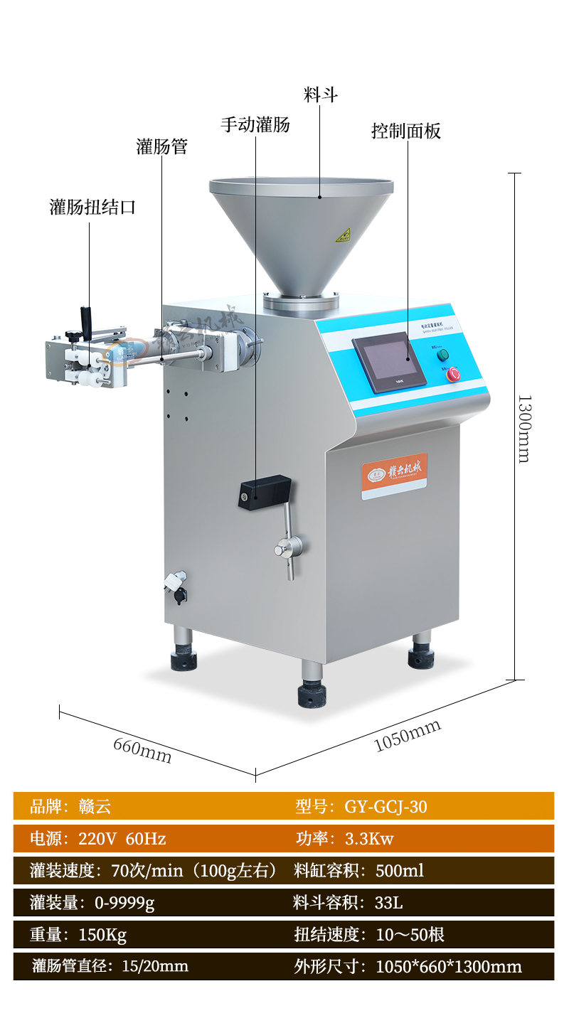 肉制品前處理->專用灌腸設(shè)備->電動(dòng)灌腸打扣一體機(jī) | |||||||