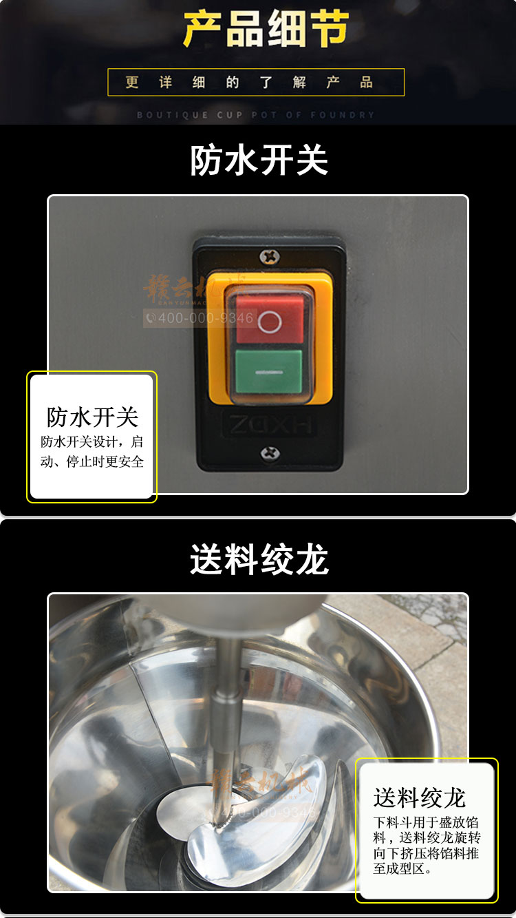 贛云推出這款快速肉丸成型機,每分鐘可成型300個實心小肉丸,這臺設備具有成型速度快、操作簡單,可做直徑15mm-28mm的丸子,丸子大小有模具控制,隨機配有三個模具,15mm、20mm和25mm,其他規(guī)格需定做。
