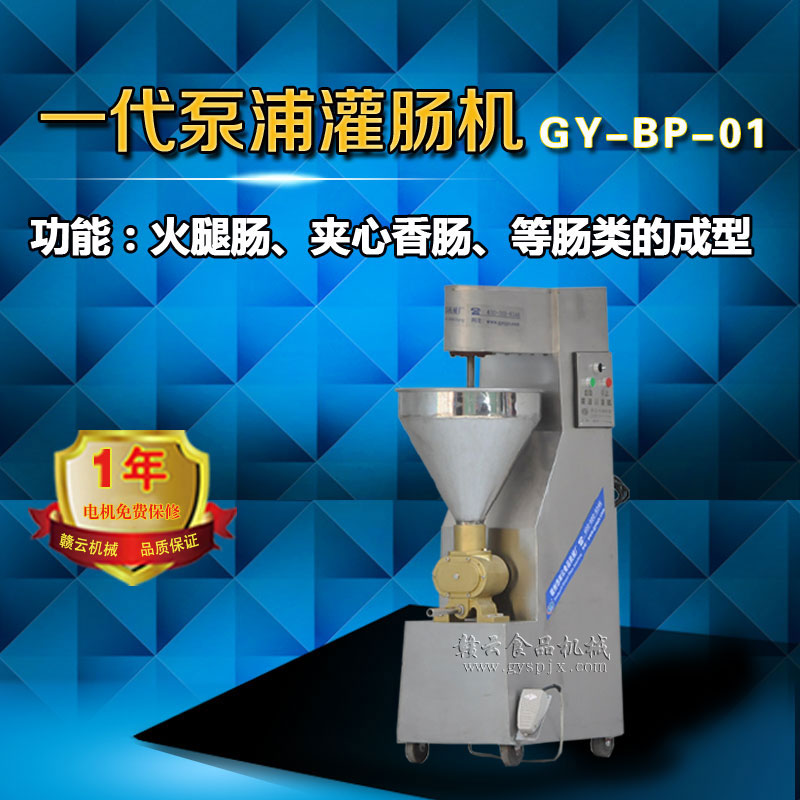 泵浦式灌腸機:可自動灌制各種香腸�;鹜饶c及臺式熱狗腸等等,產(chǎn)量能達到300kg/小時,操作方便。配有大、中、小管模可調(diào)換。設(shè)備配置電動、連動及腳踏控制系統(tǒng),配套電機可調(diào)速生產(chǎn)。