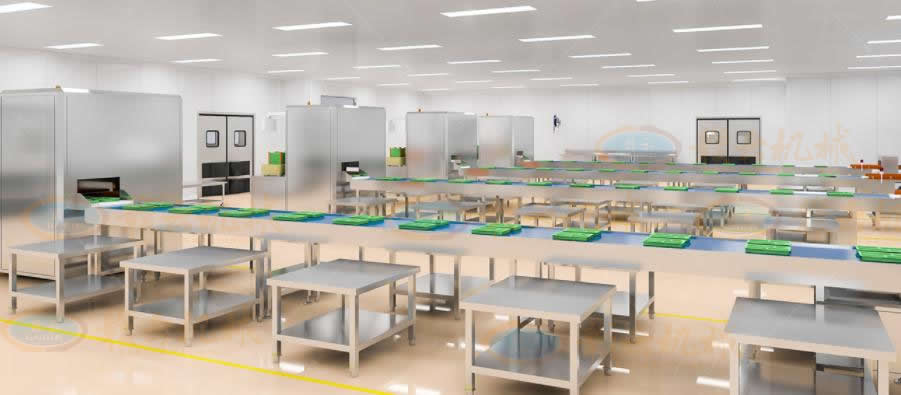 在集中化中央廚房中,大部加工程序都是使用機(jī)器來代替人工,其中凈菜加工清洗線、米飯生產(chǎn)線等工序通過設(shè)備流水線來提高產(chǎn)量和效率,以少量的人員達(dá)到所需要的生產(chǎn)產(chǎn)量,產(chǎn)量提高的同時(shí)減少人工數(shù)量、實(shí)現(xiàn)生產(chǎn)任務(wù)自動(dòng)化并簡(jiǎn)化培訓(xùn)時(shí)間過程,從而節(jié)省人力成本并提高效率。