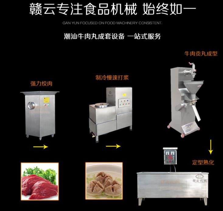 肉丸機(jī)制作肉丸的過(guò)程,因此,溫度一般控制在10℃以下,破碎粒度一般選擇在4~5mm為宜。
