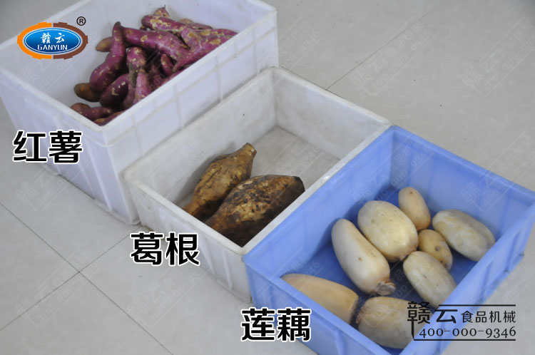 贛云SF系列紅薯刷粉機適用于加工番薯/紅薯、木薯、馬鈴薯、蕉藕、芋頭及其它塊根作物的磨碎作業(yè),加工成粉。本次拍攝GY-SF-1000型加厚款、GY-SF-850B型壓板式加厚款和GY-SF-850型紅薯刷粉機刷蓮藕、葛根、紅薯的刷粉效果,這三臺機器均配備2800r/min銅線電機,高速轉動刷粉,效果看的到。