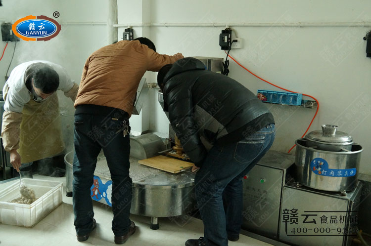2014年2月16日,贛云接待了贛州本地寧都肉丸加工商戶。在此之前,該商戶已來過了解設備,并自提少量(約兩斤肉漿)肉漿預試機體驗,贛云工作人員告知該商戶自帶肉漿太少,看不到實際效果,建議多帶些肉漿過來。