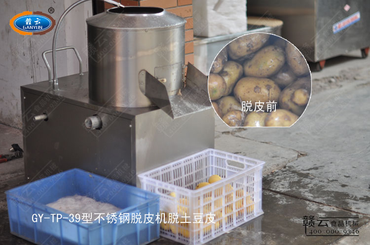 客戶體驗(yàn)至上,效果滿意為旨,來自贛州本地客戶試機(jī)體驗(yàn)39型不銹鋼脫皮機(jī)去除土豆皮�?蛻糇詭炼乖嚈C(jī)體驗(yàn)。