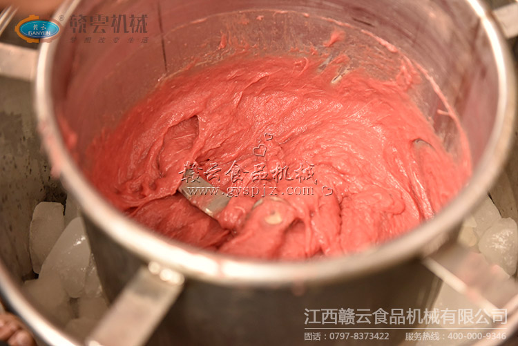 本次試機(jī)主要采用了32型強(qiáng)力絞肉機(jī)、28型高速肉丸打漿機(jī)和贛云第三代包心肉丸機(jī),由于市場購買的是新鮮牛肉,所以原定計(jì)劃采用變頻慢速肉丸打漿機(jī)試機(jī)的臨時(shí)改為高速肉丸打漿機(jī)。