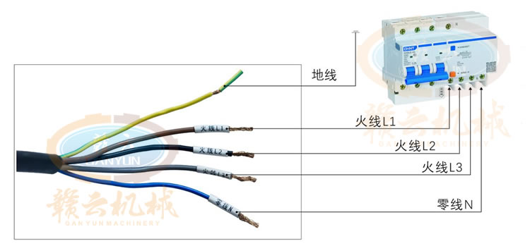 1、機(jī)器放水平地面上,讓機(jī)器設(shè)備整體平穩(wěn)、所有支撐腳都接觸到地面,對(duì)設(shè)備進(jìn)行搖晃測(cè)試后不會(huì)出現(xiàn)搖晃現(xiàn)象。請(qǐng)將三相四線安全正確接入空氣開關(guān)內(nèi),并確保該空氣開關(guān)或閘刀保險(xiǎn)容量符合設(shè)備功率運(yùn)轉(zhuǎn)。(空氣開關(guān)63A以上為佳)