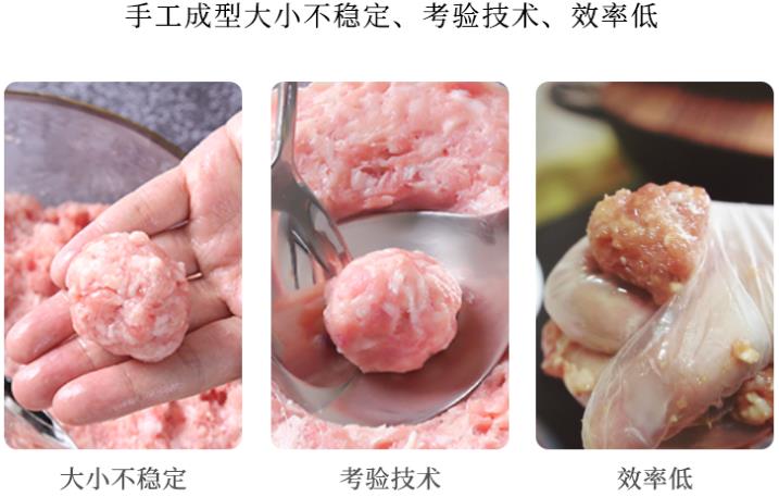 通過這種方法能夠保證肉丸的風(fēng)味,但是其生產(chǎn)效率低下,而且不易保持一致的產(chǎn)品質(zhì)量。手工制作肉丸還容易受到操作人員技術(shù)水平的影響,導(dǎo)致產(chǎn)品規(guī)格不一。